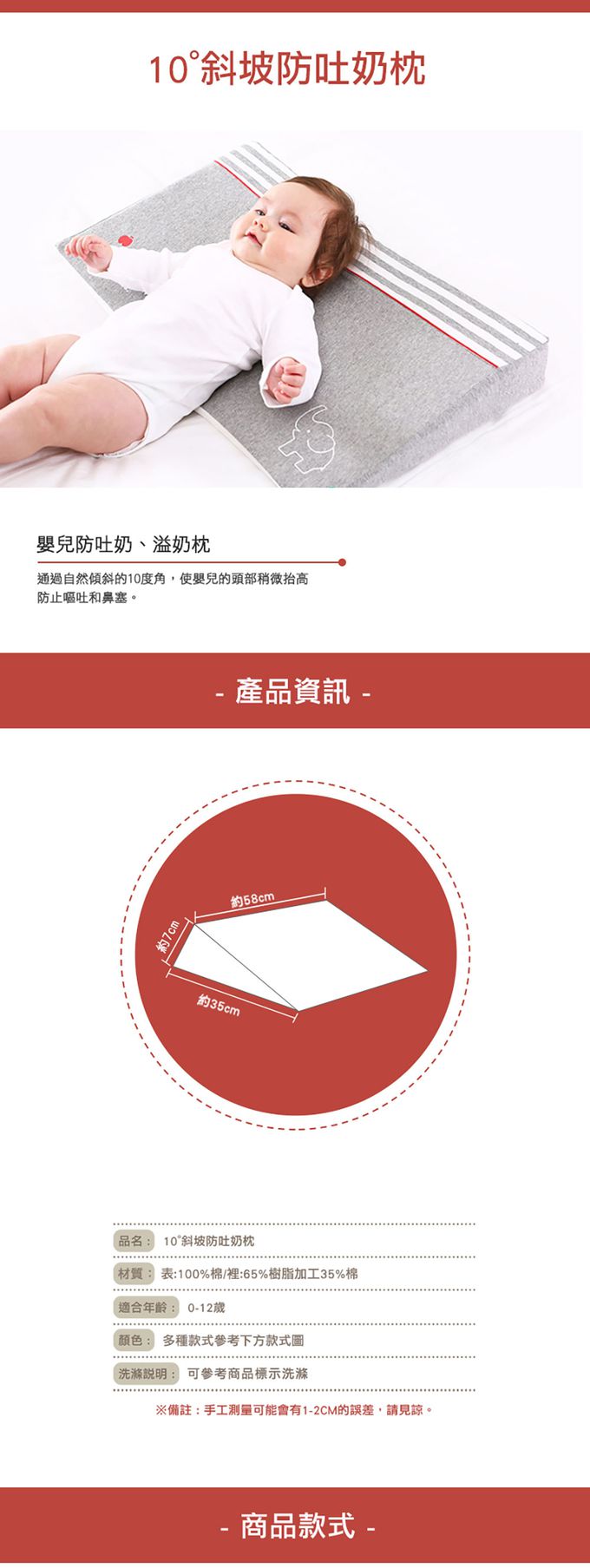 • 傾斜10度角,嬰兒防吐奶,孕婦側睡更舒適