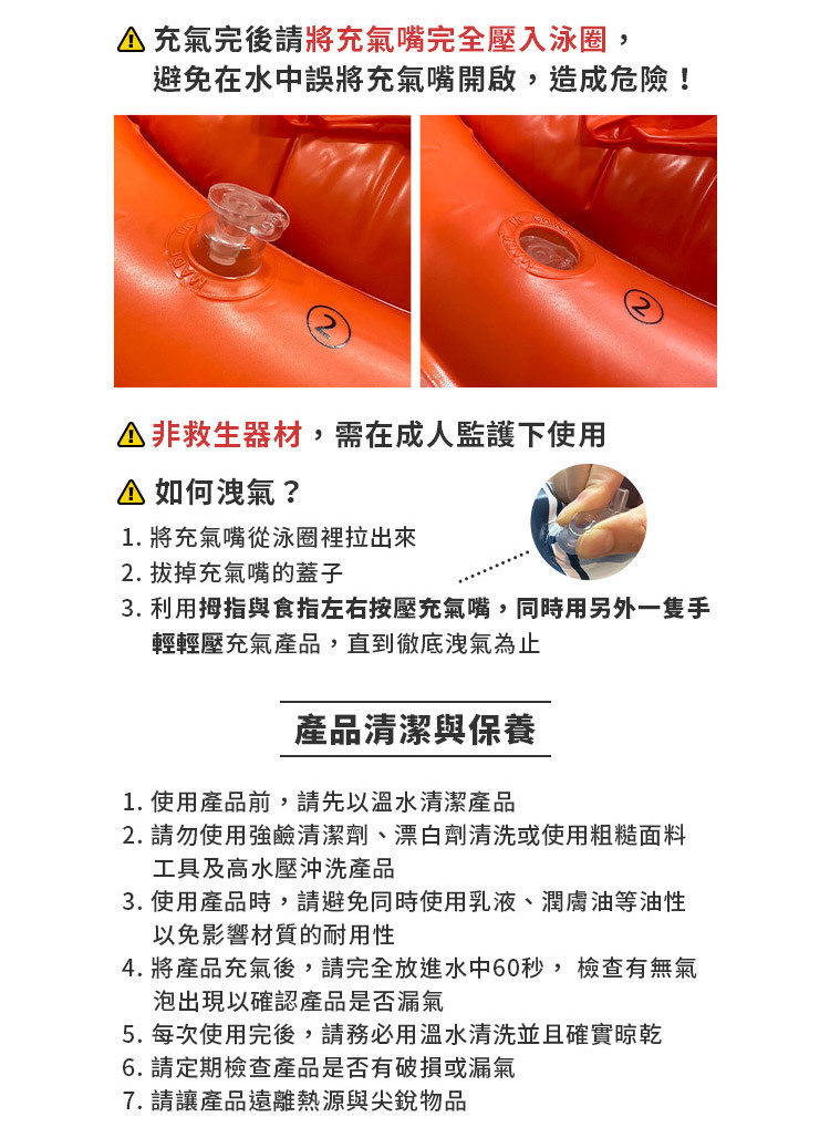 3.請勿將泳圈內的空氣作為呼吸使用