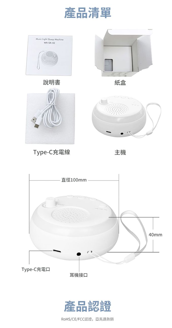 品名:白噪音機 助眠機 寶寶安撫 小夜燈 智能定時關機