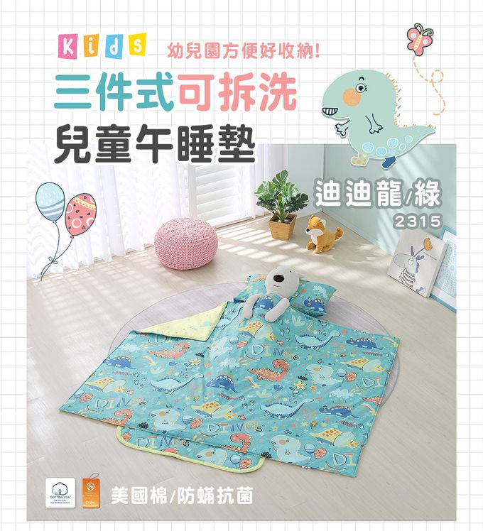 品名:兒童三件式睡袋 防螨抗菌100%美國棉 睡墊 涼被 枕頭