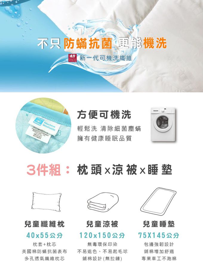 三件式不悶熱,睡墊、涼被、兒童纖維枕