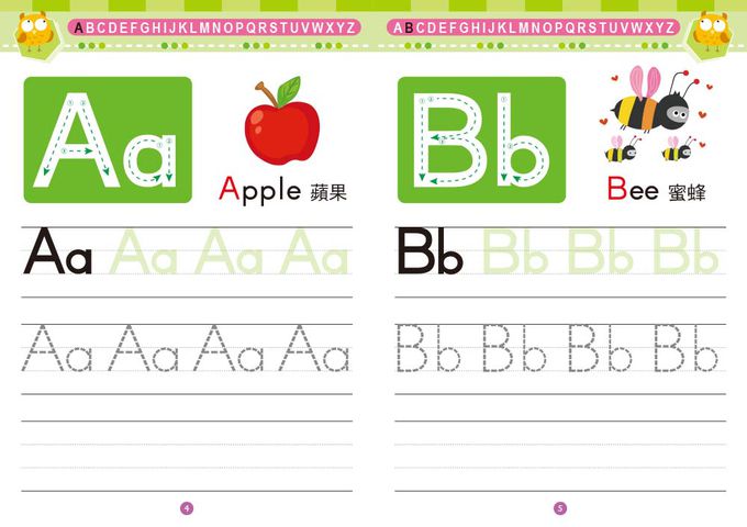 以學寫ABC為主,從運筆練習出發,利用可愛插圖引導幼兒認識英文字母,幫助幼兒學寫ABC,附有筆劃順序,建立正確的書寫步驟。更有英文字母大小寫總表、字母順序、單字和字母小遊戲,在趣味中奠定學習的基礎。