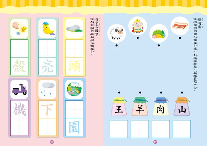 →利用填填看、連連看等遊戲,提升孩子認識國字的能力。