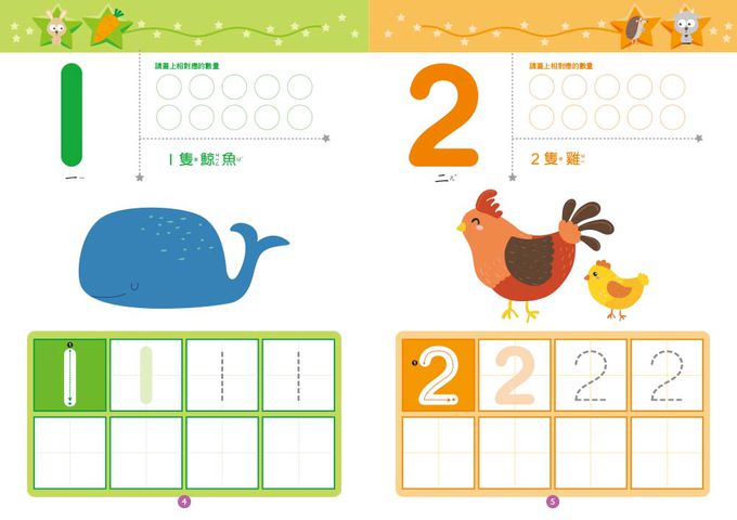 數字是學習數學的根基。產品內容包含認識數字1到100、筆順習寫、數序、數與量認知和數字小遊戲,所附印章筆,不只能幫助幼兒學寫數字1~100,還能搭配可愛插圖,利用蓋印章活動,幫助孩子強化數與量的學習。