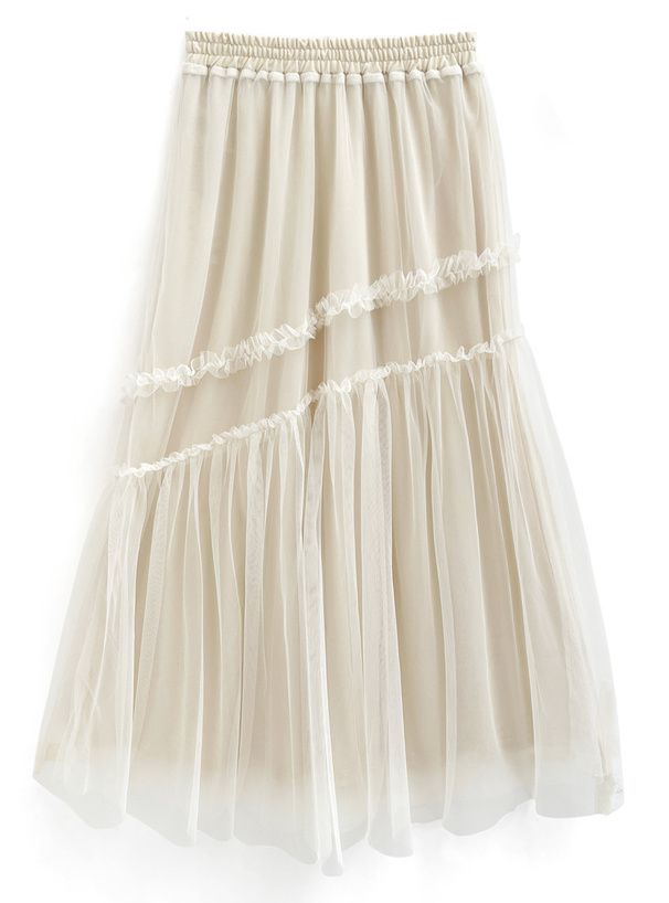 ![日本 GRL - 優雅抓皺泡泡布吊帶裙-米杏]()