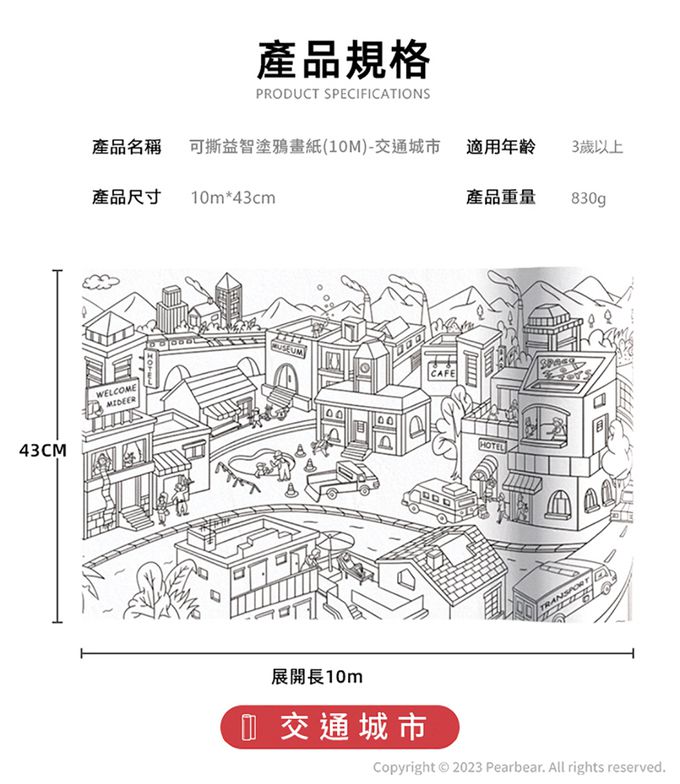 品名:可撕益智塗鴉畫紙(10M)-交通城市