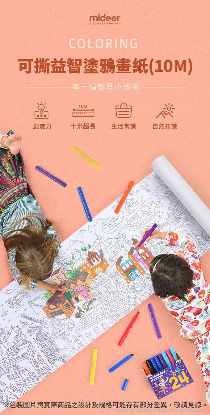 MiDeer - 可撕益智塗鴉畫紙(10M)-交通城市