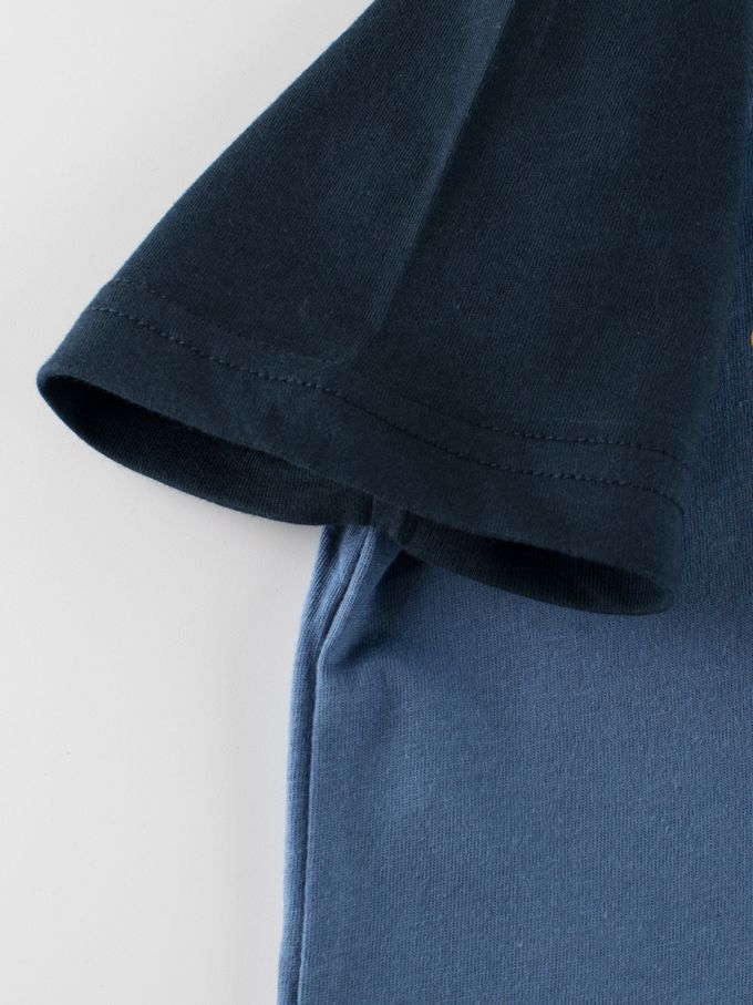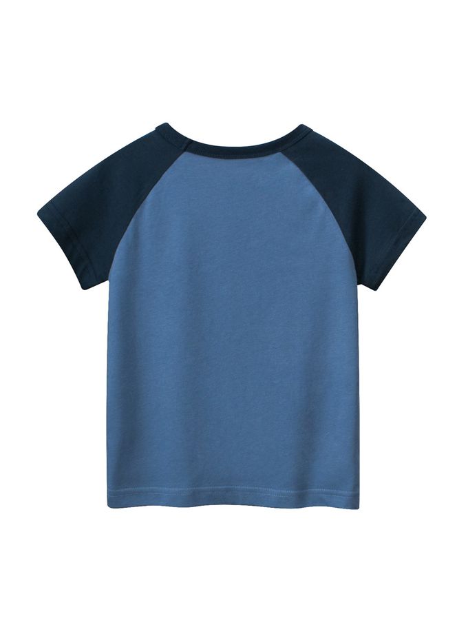 27KIDS - 純棉短袖上衣-藍色笑笑獅-灰綠色