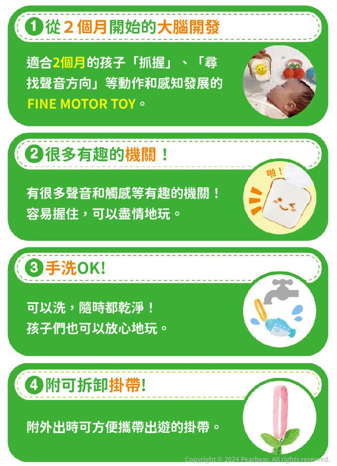 透過觸摸、抓取、握住、捏訓練小手肌肉