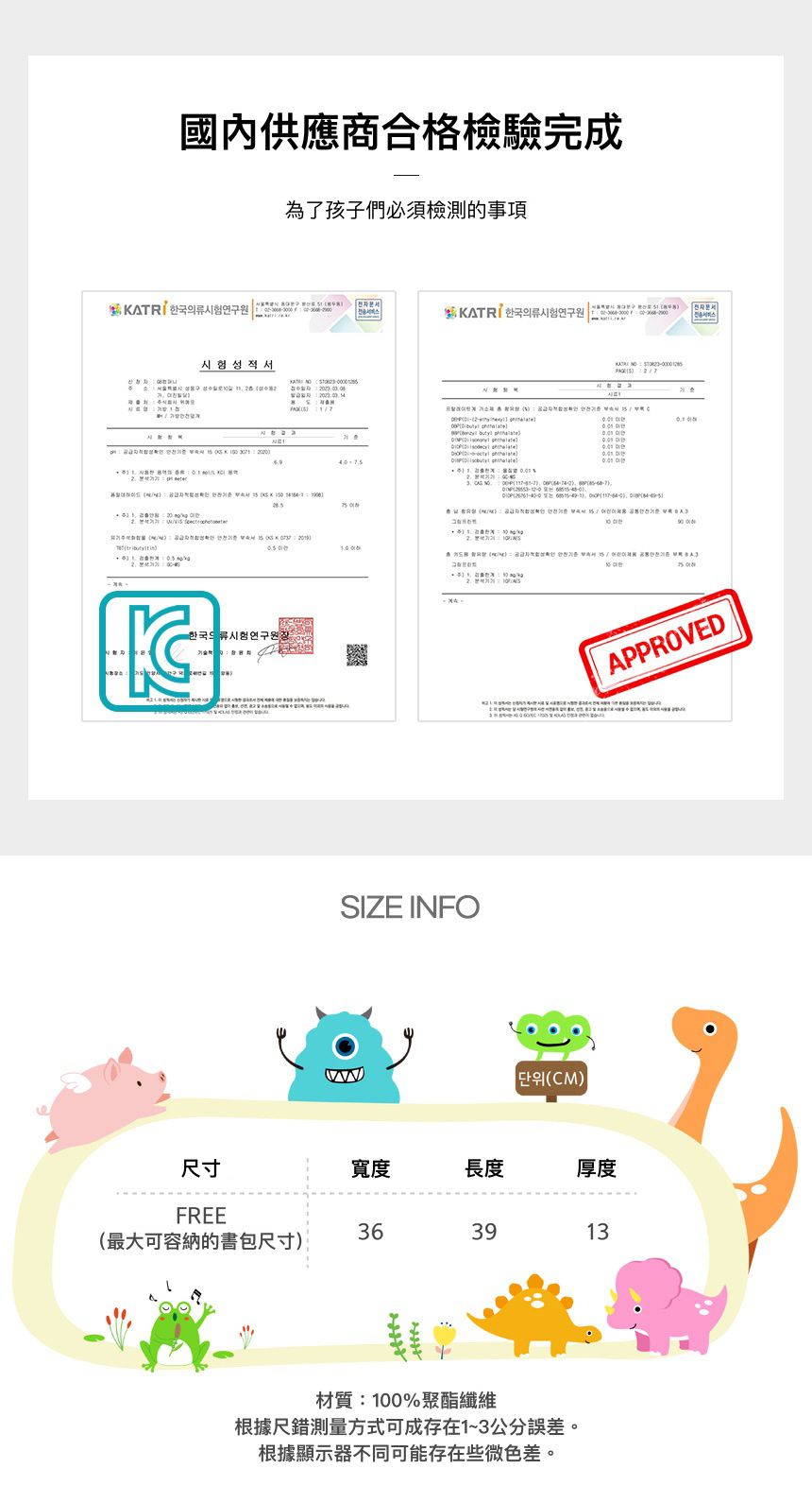 這款書包雨衣是Freesize,最大可套在36*39*13cm的書包上,媽咪們選購之前可以先看一下家裡書包的大小呦!