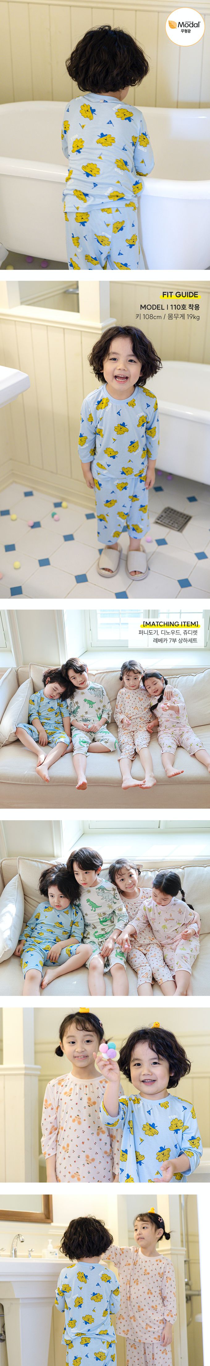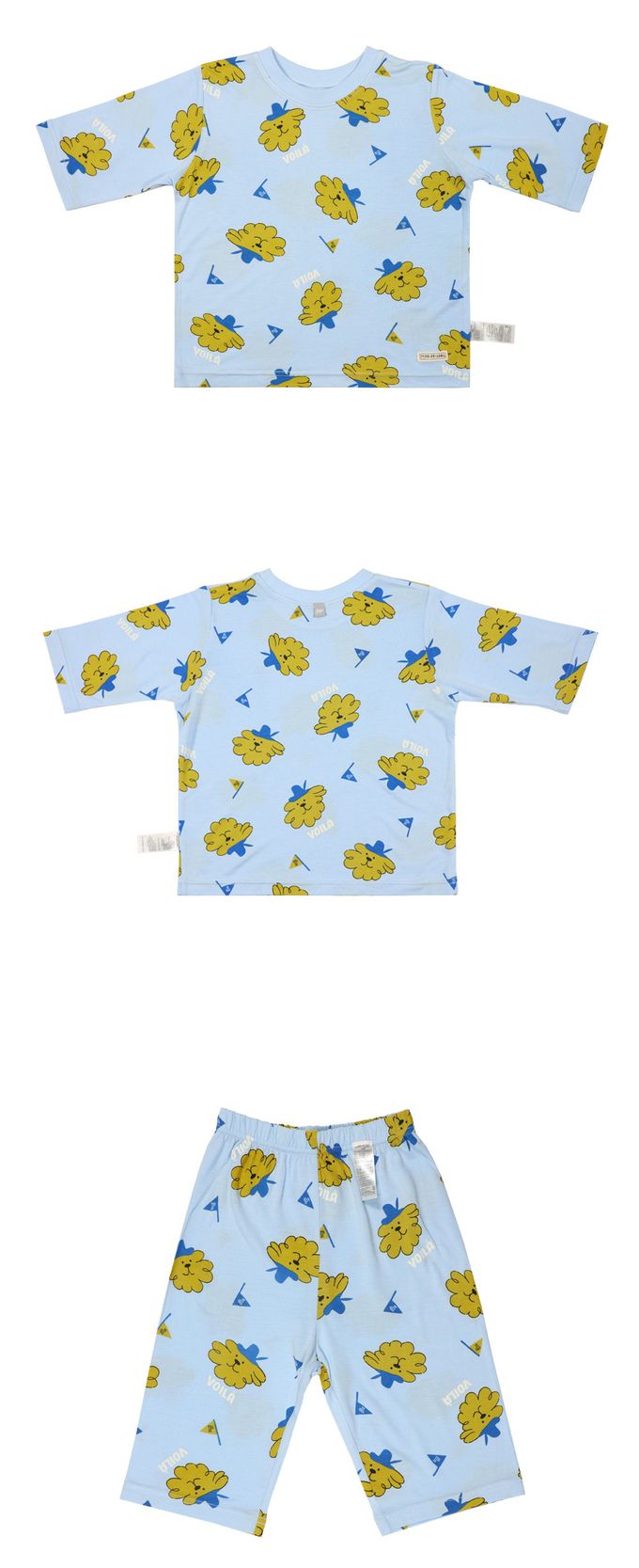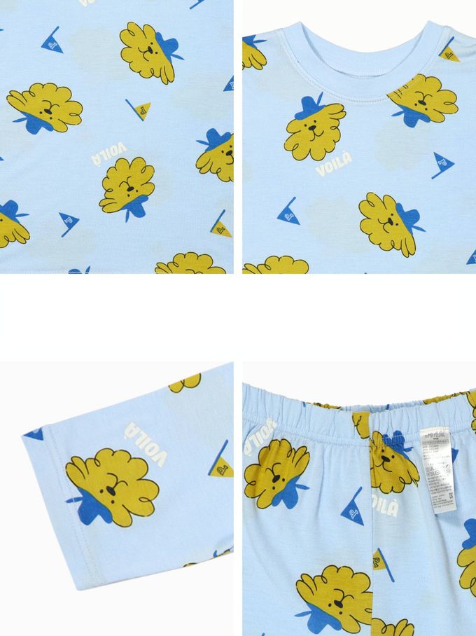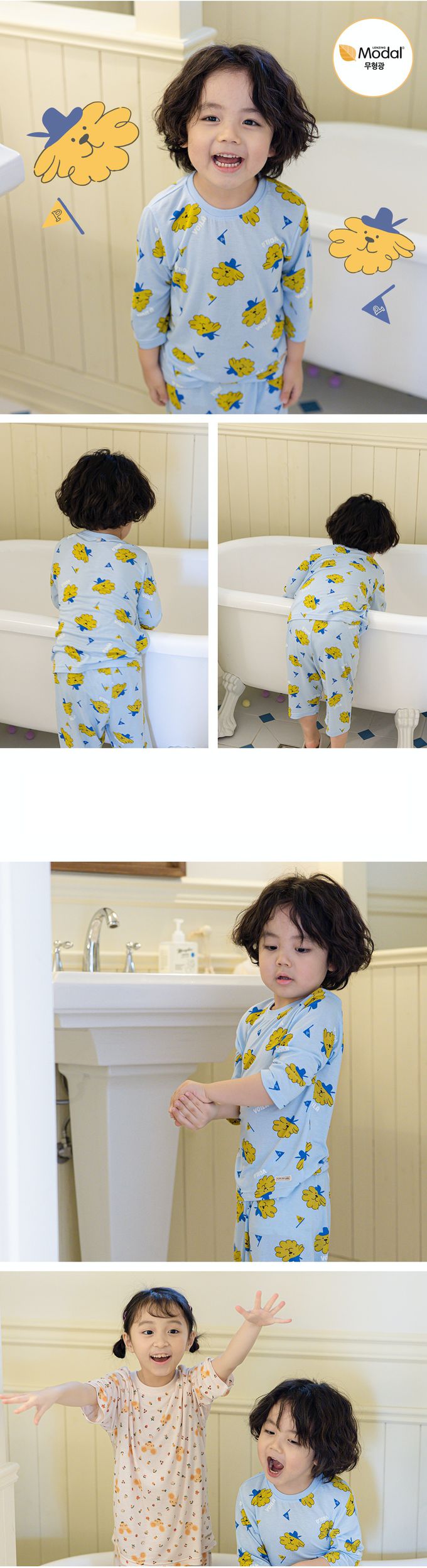 韓國 Ppippilong - 親膚莫代爾7分袖家居服/睡衣-卷毛小狗-淺藍