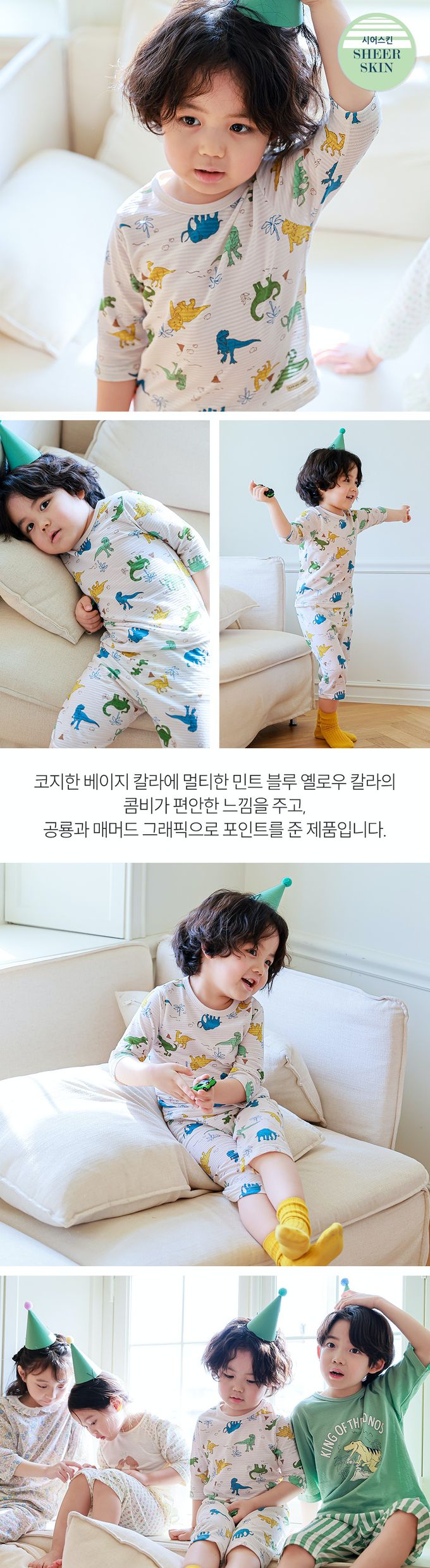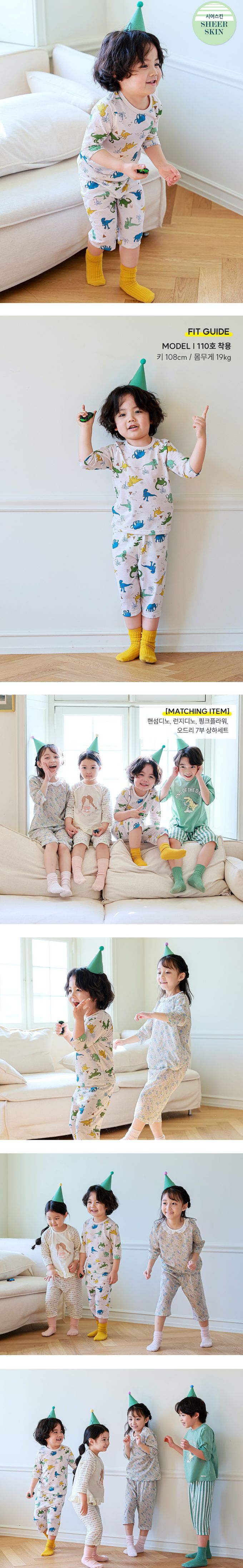 韓國 Ppippilong - 舒透緹花7分袖家居服/睡衣-恐龍世界