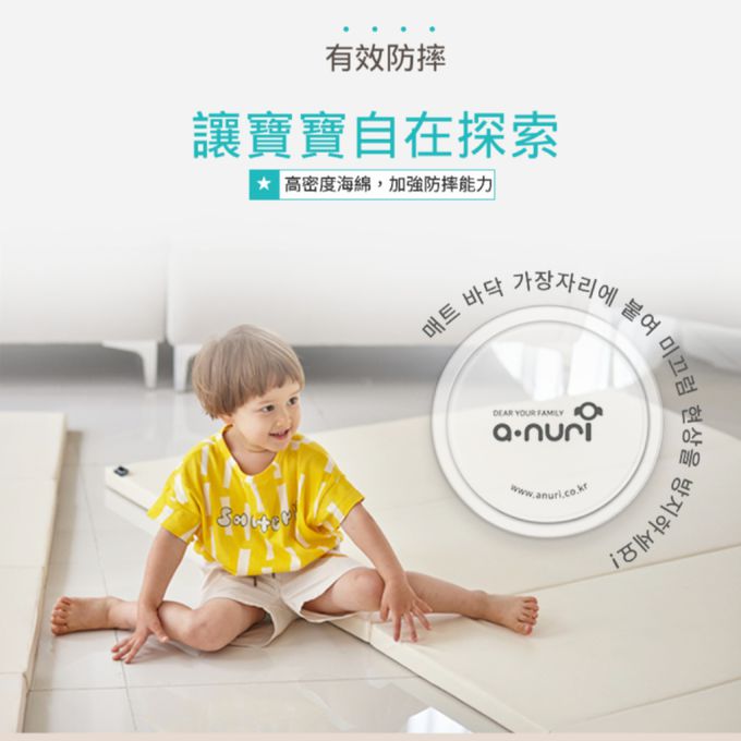 韓國 ANURI - 韓國製 地墊超強吸震嬰兒安全地墊☆4公分厚款-升級抗菌款-四折墊-灰米 (200*140cm)