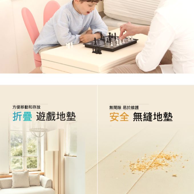 韓國製 地墊超強吸震嬰兒安全地墊☆4公分厚款-升級抗菌款-四折墊-灰米 (200*140cm)