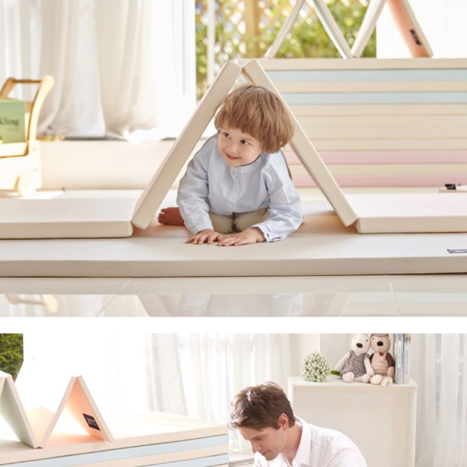 韓國製 地墊超強吸震嬰兒安全地墊☆4公分厚款-升級抗菌款-四折墊-粉米 (200*140cm)