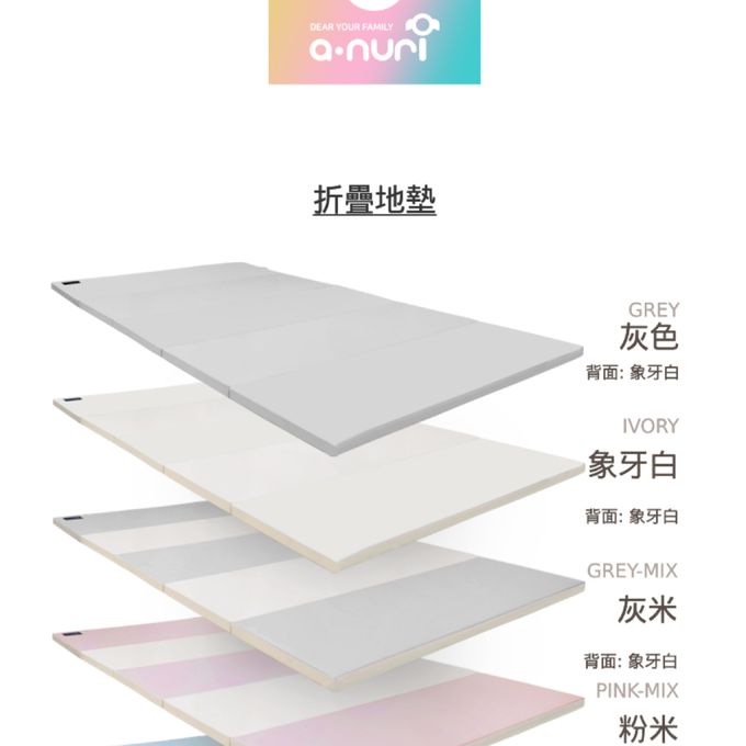 韓國 ANURI - 韓國製 地墊超強吸震嬰兒安全地墊☆4公分厚款-升級抗菌款-四折墊-灰米 (200*140cm)
