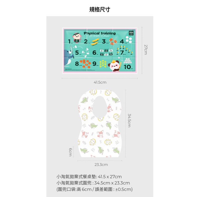 小淘氣拋棄式餐桌墊圍兜雙享組