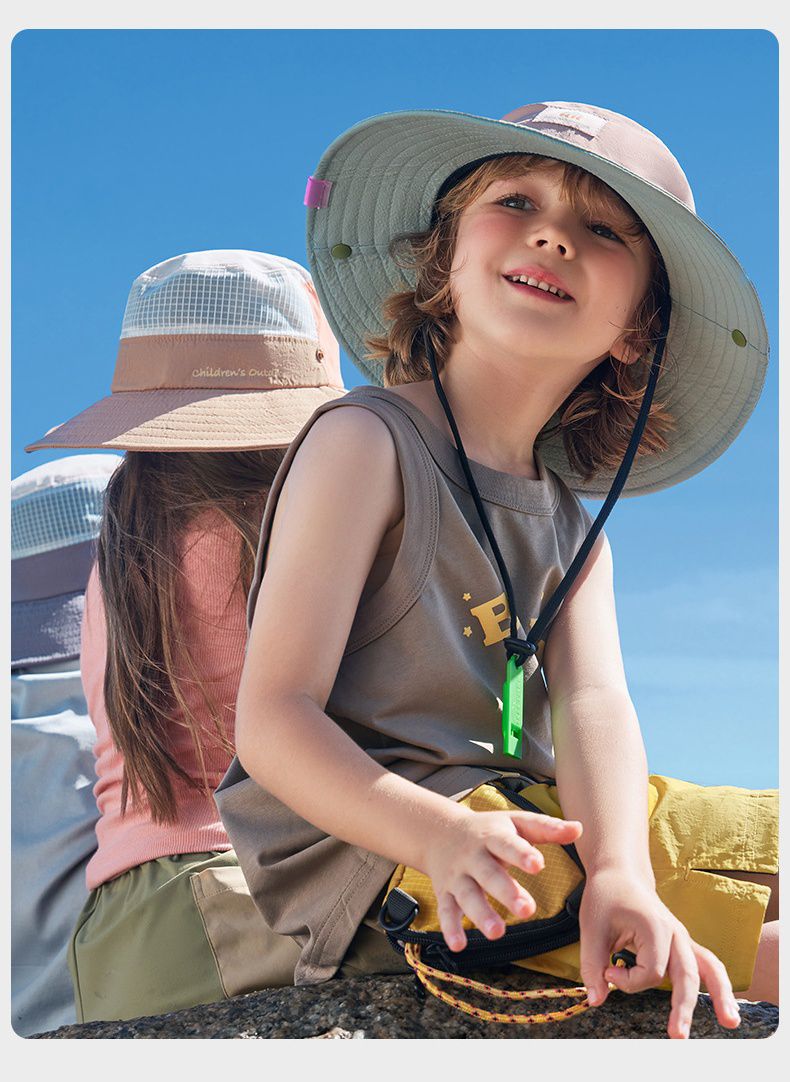 可調節兒童大帽簷防曬遮陽帽-活力橙