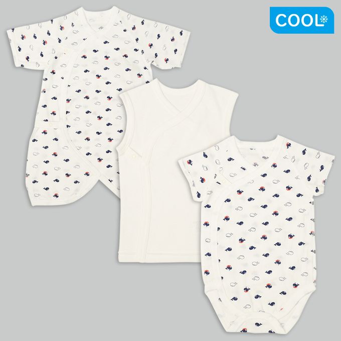 ●尺寸(約・ cm)=無袖肚衣[50]胸圍44.0、衣長35.0、肩寬21.0七分袖蝴蝶裝[50~60]胸圍50.0、衣長46.5、袖口寬9.5短袖包屁衣[50~60]胸圍45.0、衣長40.0、袖口寬9.5