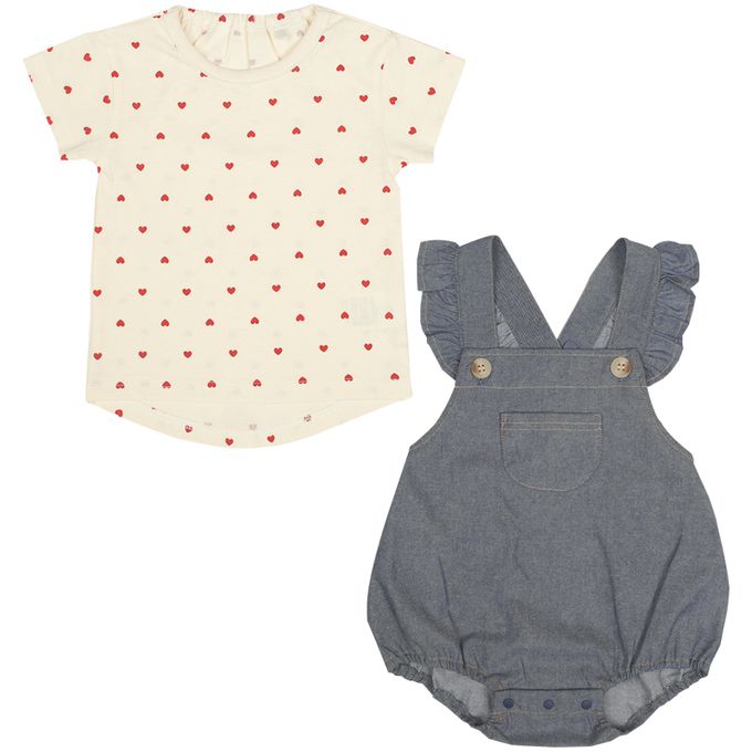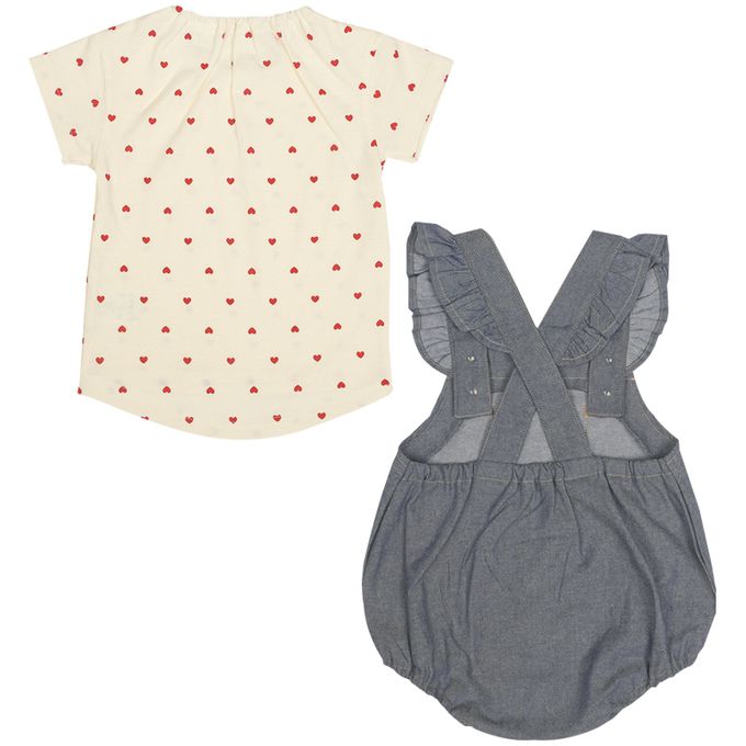 akachan honpo - 吊帶褲+T恤-淺卡其色