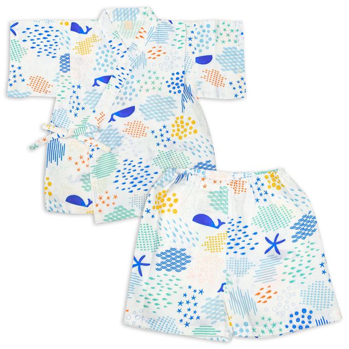 akachan honpo - 兩件式甚平-海洋生物-象牙白色