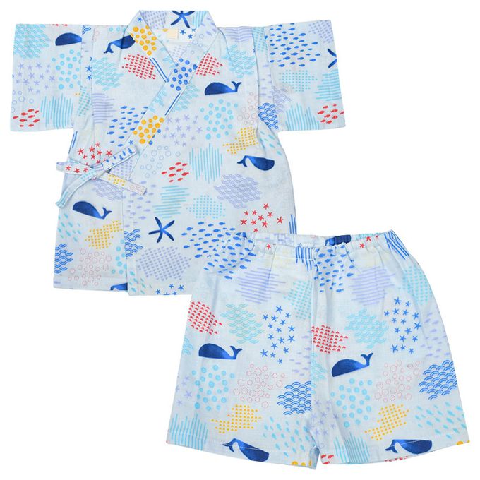 akachan honpo - 兩件式甚平-海洋生物-藍色