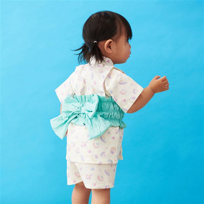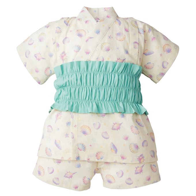akachan honpo - 附腰帶幼童甚平-貝殼-綠色