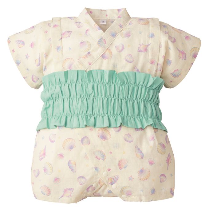 akachan honpo - 附腰帶甚平包屁衣-貝殼-綠色