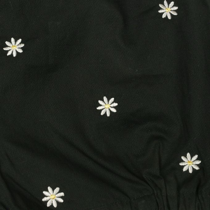 休閒風的丹寧和上面有小花刺繡的細平棉布