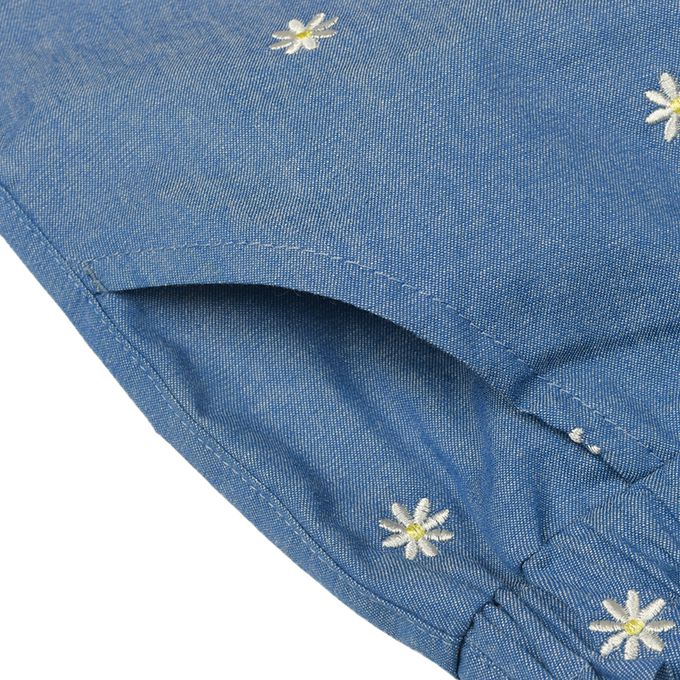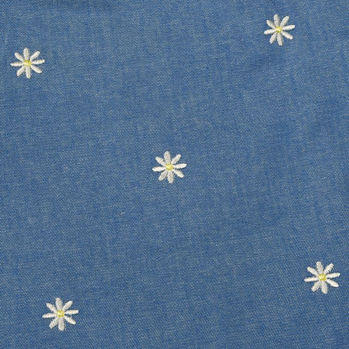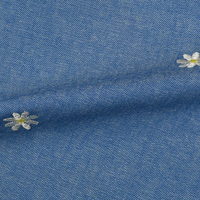 休閒風的丹寧和上面有小花刺繡的細平棉布