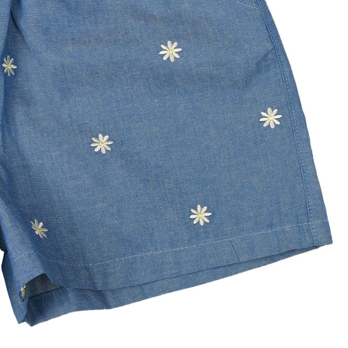 短褲-平織 刺繡滿版圖案-深藍色