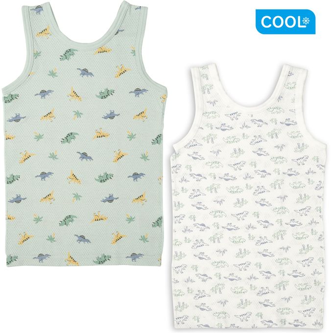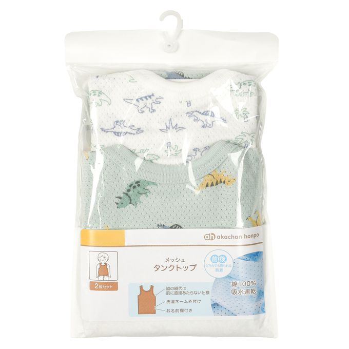 akachan honpo - 網眼坦克背心2件組-恐龍-綠色