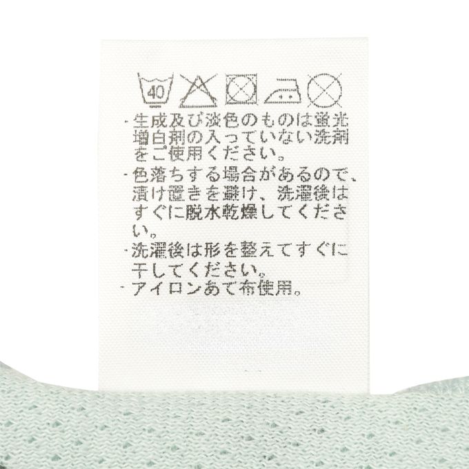 • 注意事項:●標示內容遵照台灣法規之規定。●請使用不含螢光增白劑的洗劑。●熨燙請使用墊布。