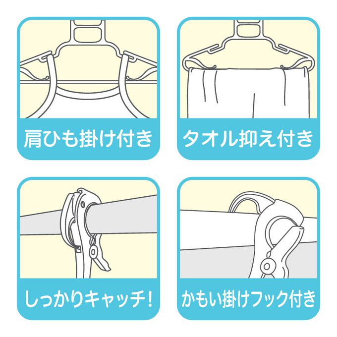 材質:<衣架>主體:聚丙烯、彈簧:鋼(鍍鋅處理)<主體>主體:聚丙烯、彈簧:鋼(鍍鋅處理)、鐵絲:包膠鐵絲