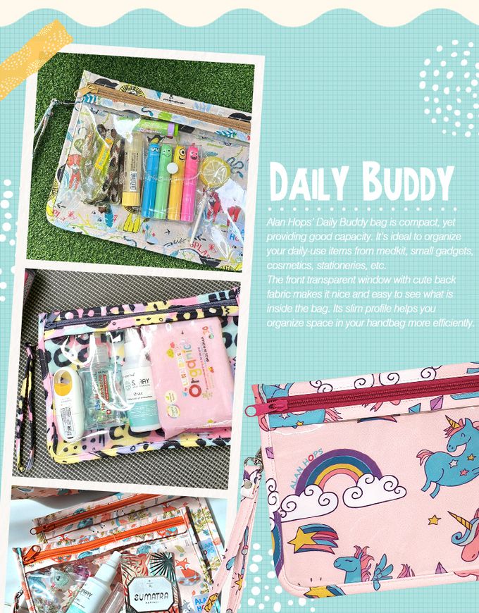 。背面為賞心悅目的時尚花色, 正面為透明面, 一看便知裡面內裝物.
