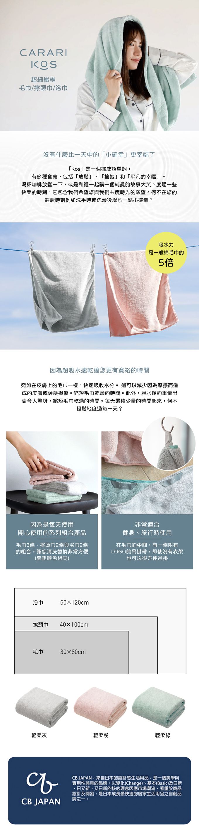 日本 CB JAPAN - carari kos系列 超細纖維浴巾2入組