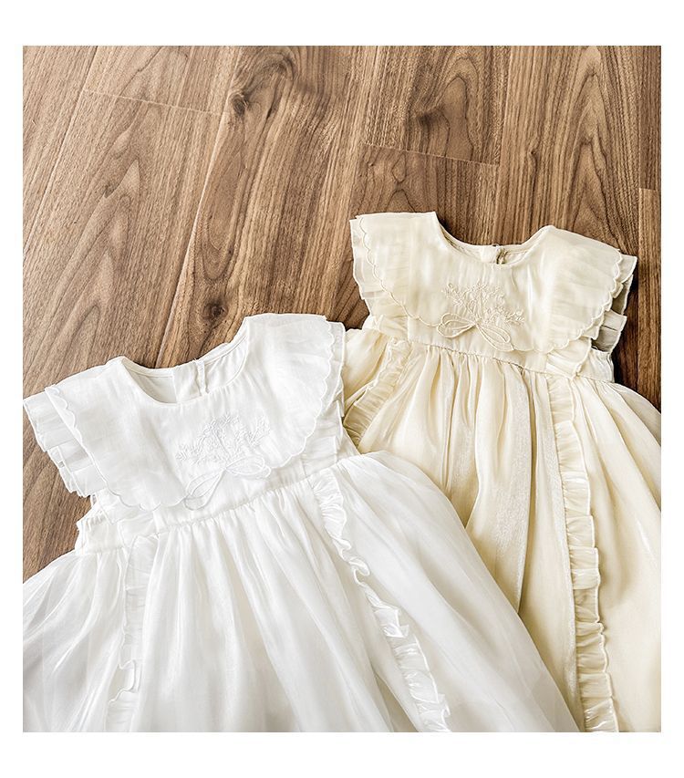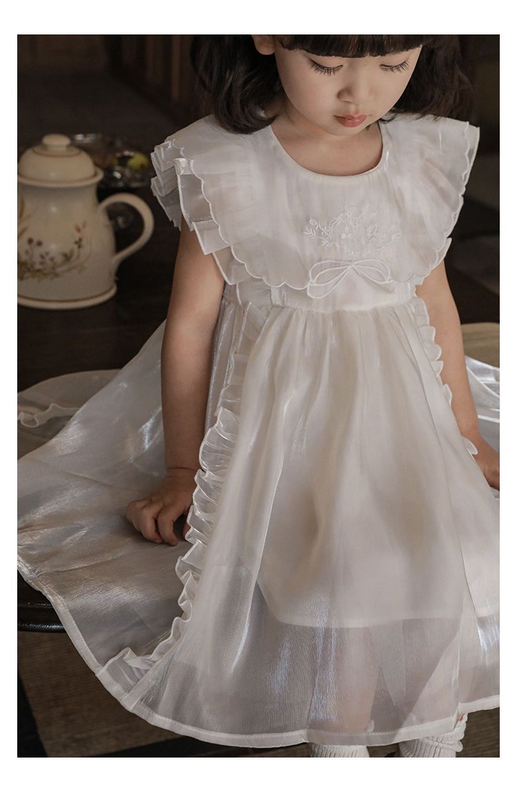 品名:微光澤荷葉邊小飛袖網紗洋裝