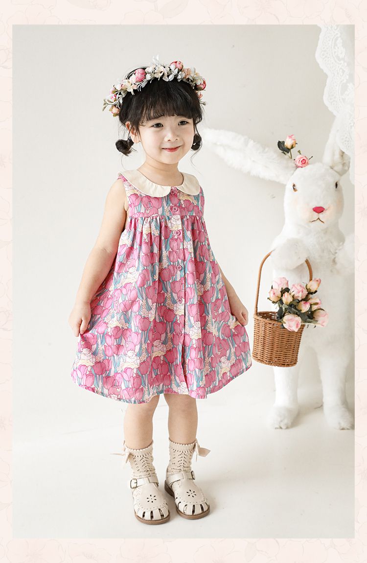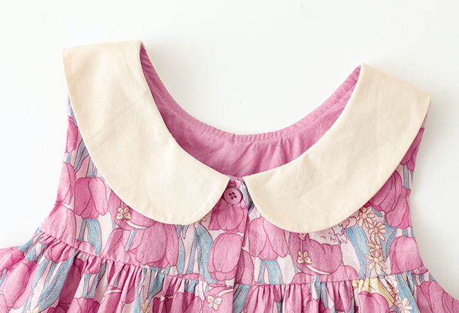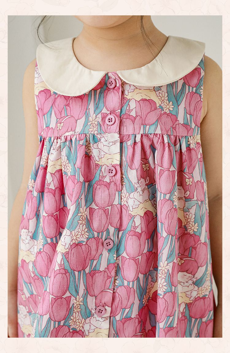 純棉娃娃領滿版花卉無袖洋裝-粉色