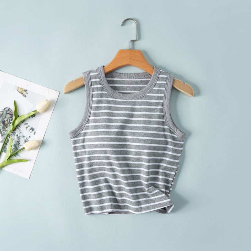 棉質柔軟條紋Bra T-灰色
