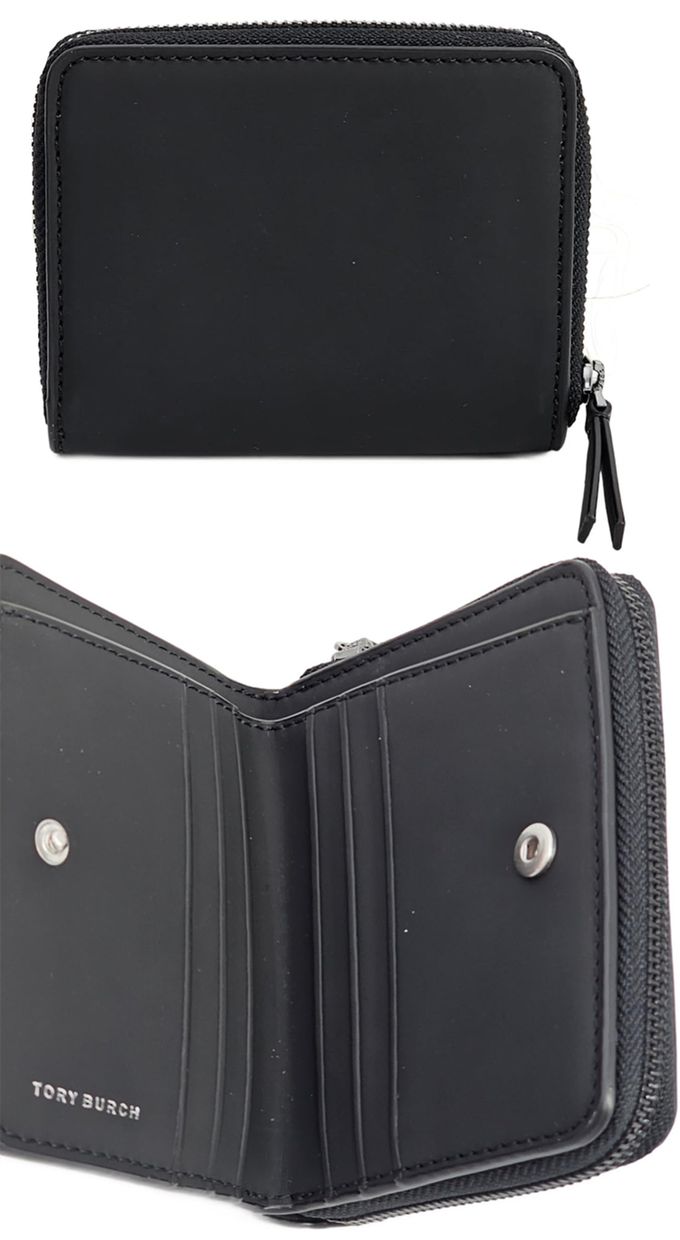 雙T-LOGO素面皮革短夾 (霧黑)