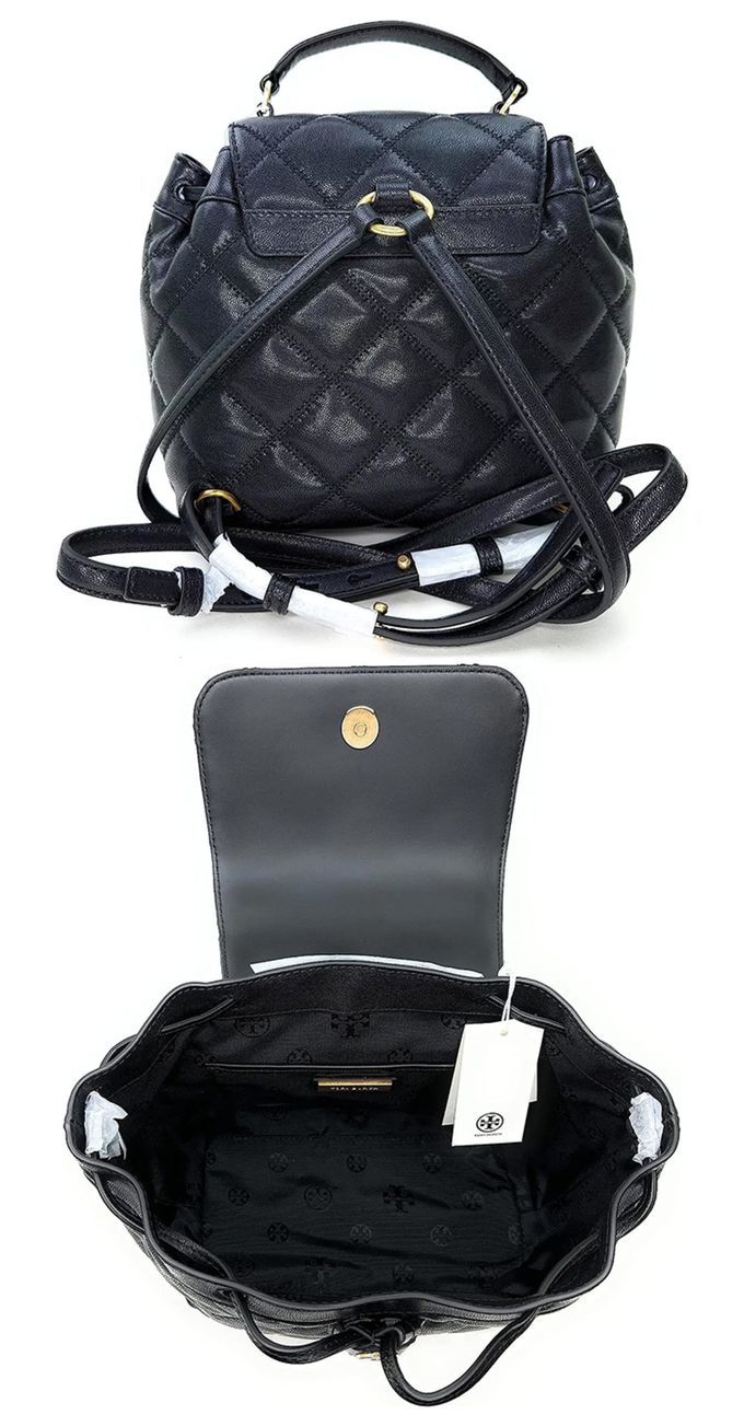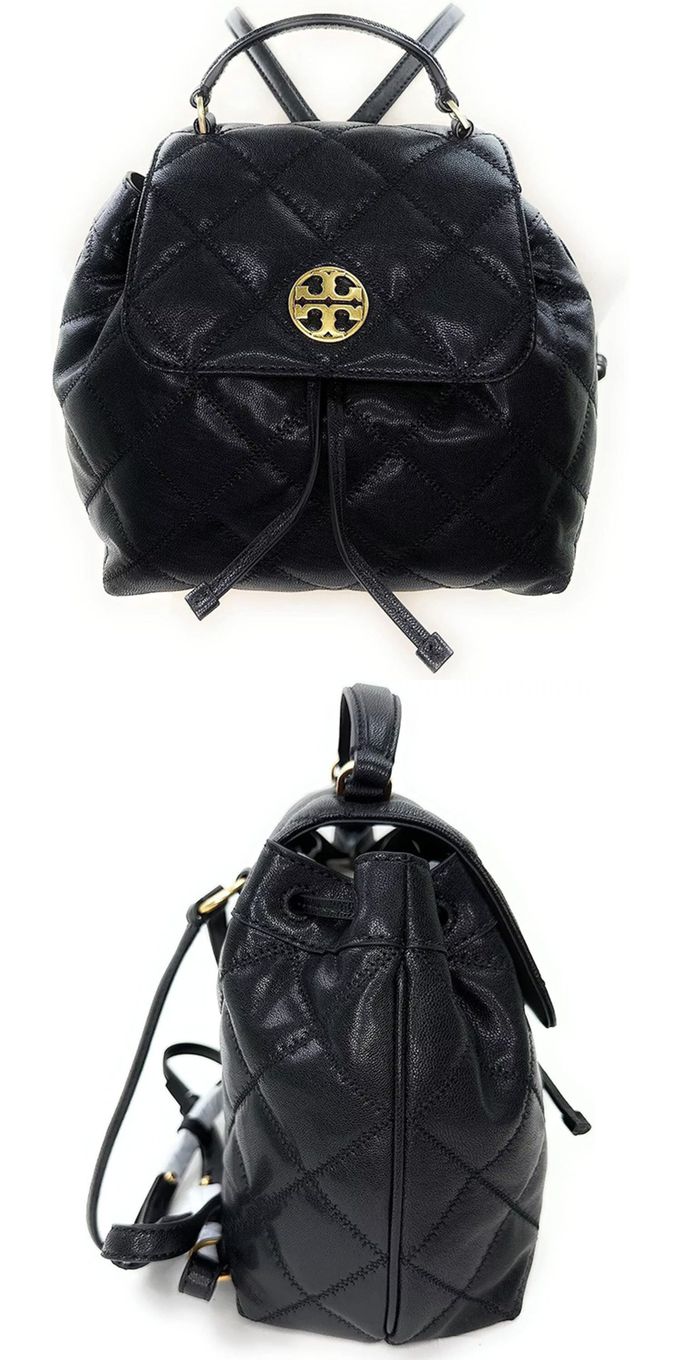 品名:雙T-LOGO束口格菱紋皮革後背包