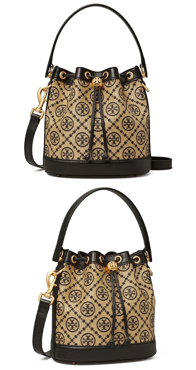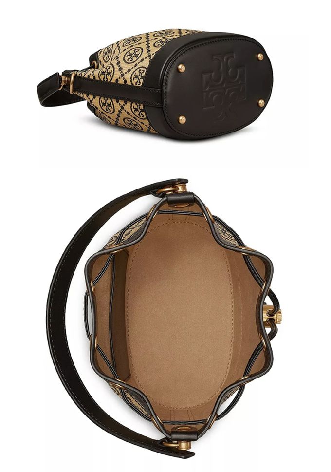 品名:緹花拼接皮革水桶包
