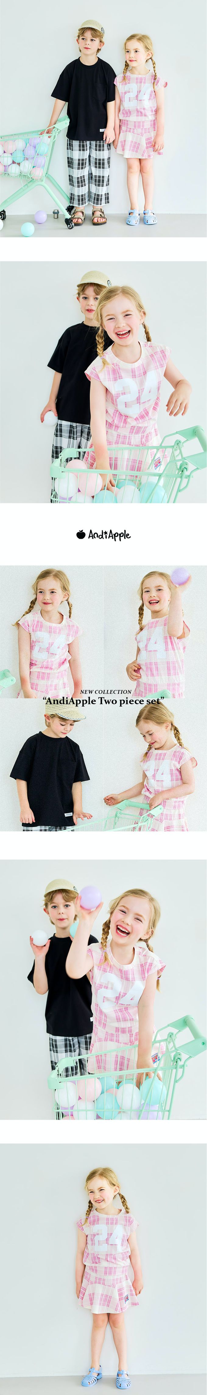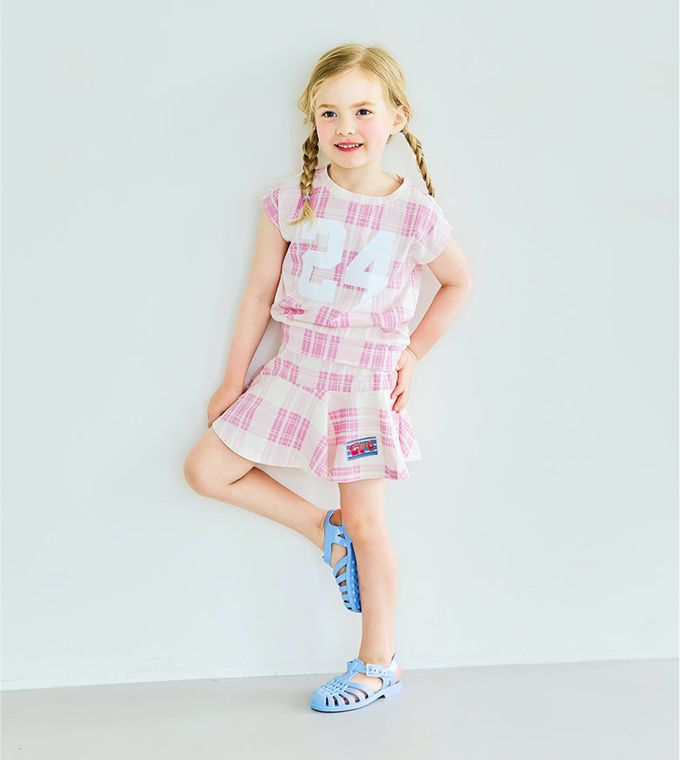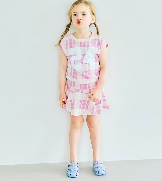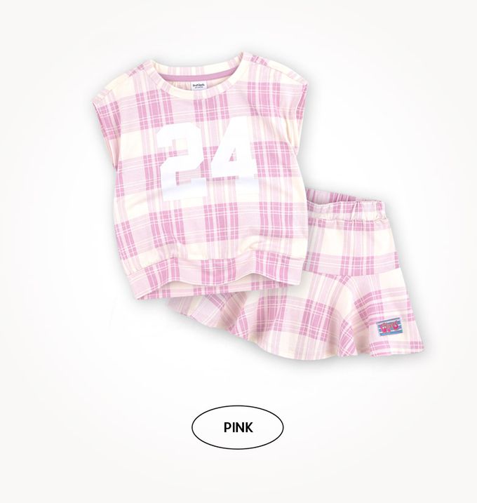 韓國 AndiApple - 格紋數字24上衣褲裙套裝-粉