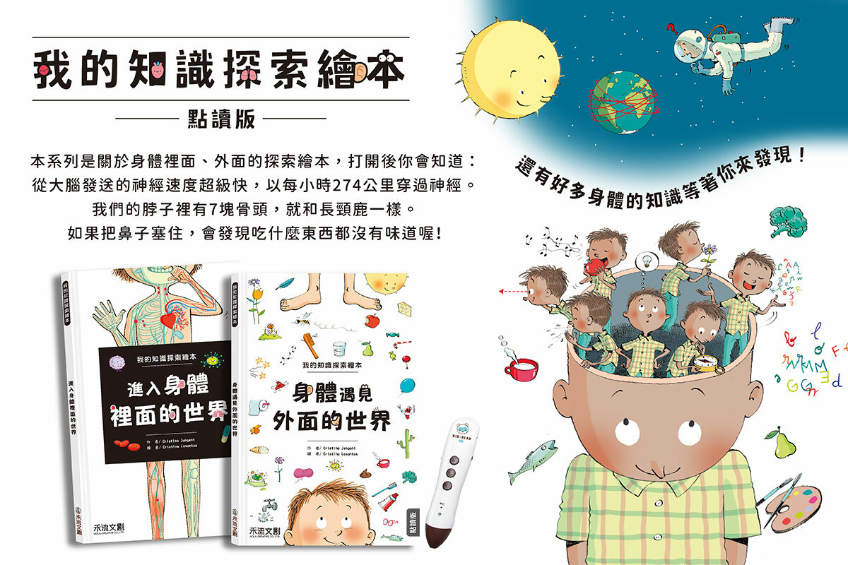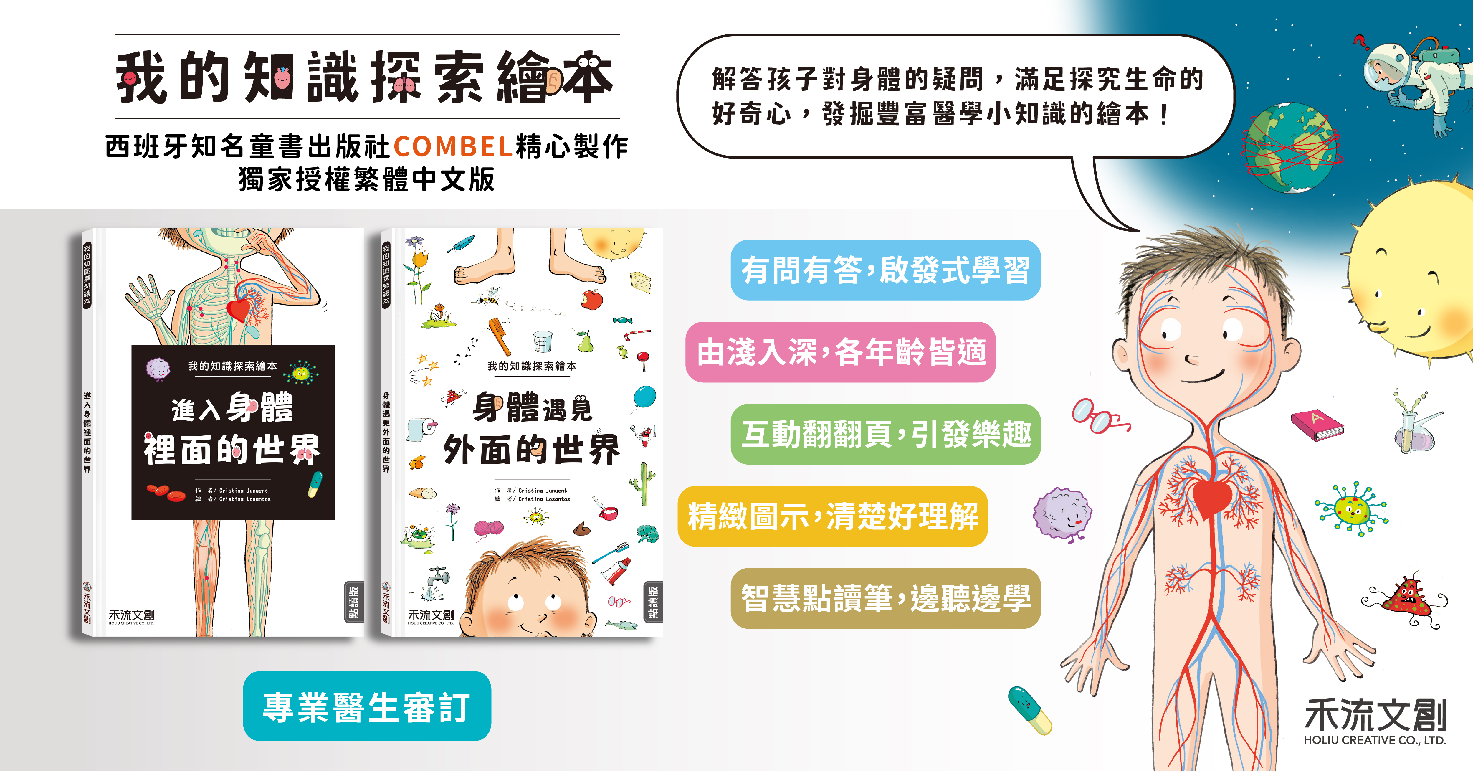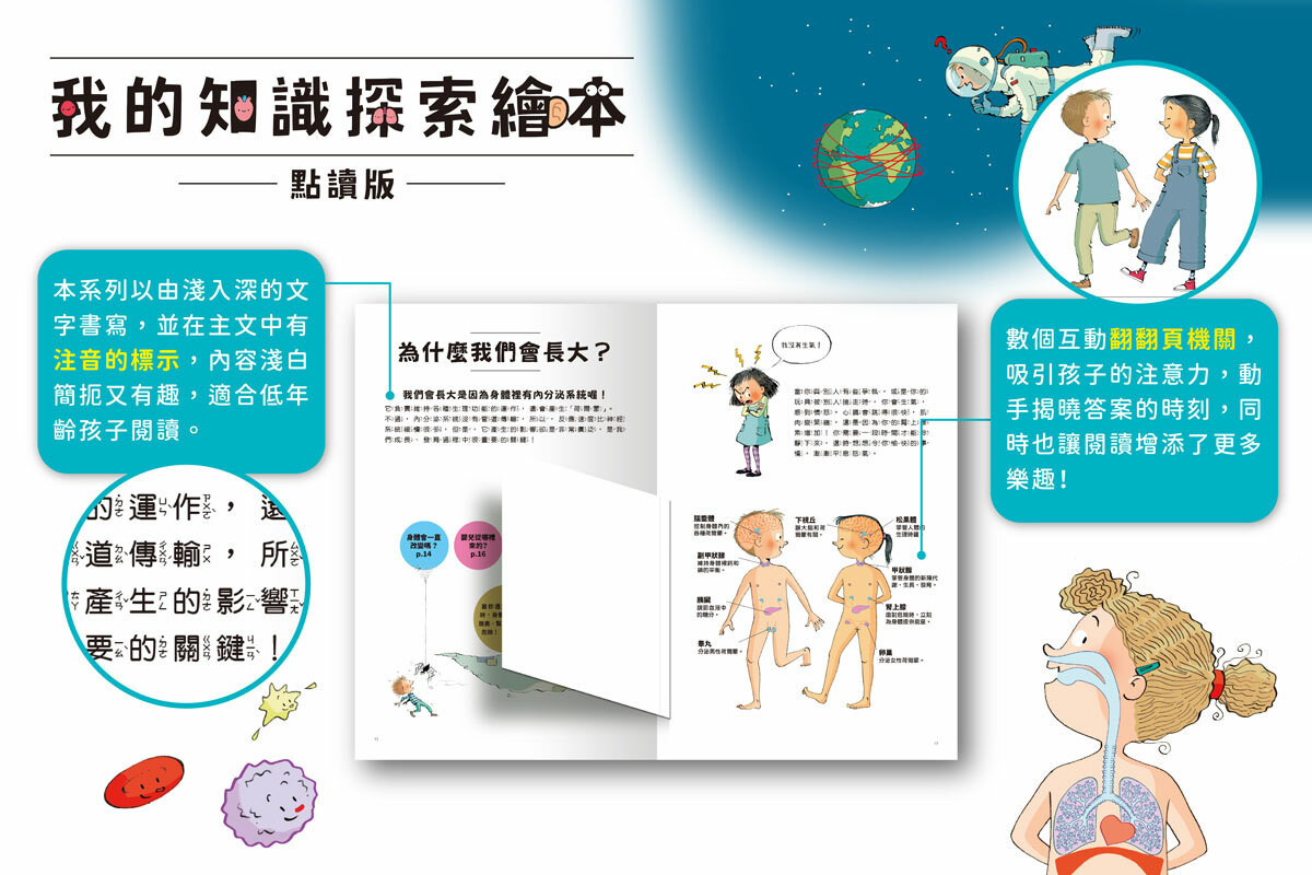 由西班牙知名童書出版社COMBEL精心製作《我的知識探索繪本 第1輯》獨家授權繁體中文版!這是一本有問有答的人體小百科,搭配點讀讓知識敘述變得精彩生動,時不時有互動翻翻頁增添樂趣。內文的編排也非常適合各年齡層閱讀~一起來探索人體的奧秘!