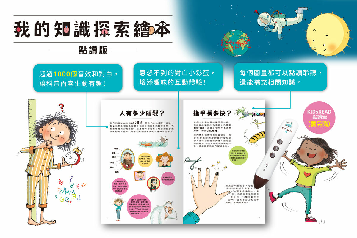 除了文字能點讀,每個圖畫竟然也都可以點讀聆聽,還會補充相關知識欸!甚至超過1000個音效和對白,讓孩子在閱讀過程中能與書有更趣味的互動體驗。