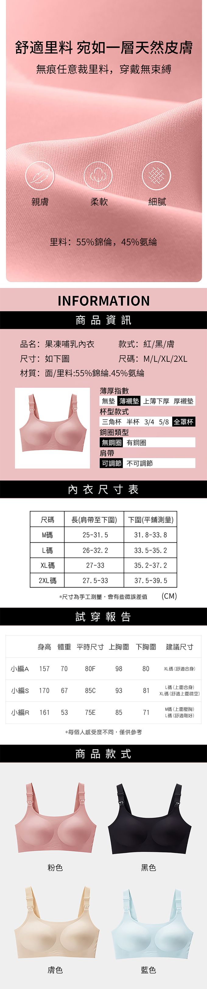 【商品規格】黑色/膚色/粉色