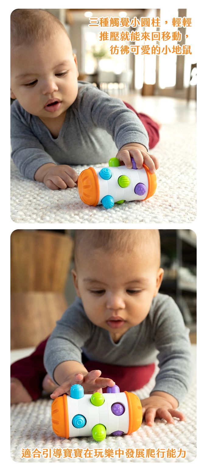 - 三種觸覺小圓柱,輕輕推壓就能來回移動,彷彿可愛的小地鼠般,一會兒探出頭,一會兒又躲進洞裡!