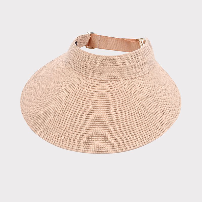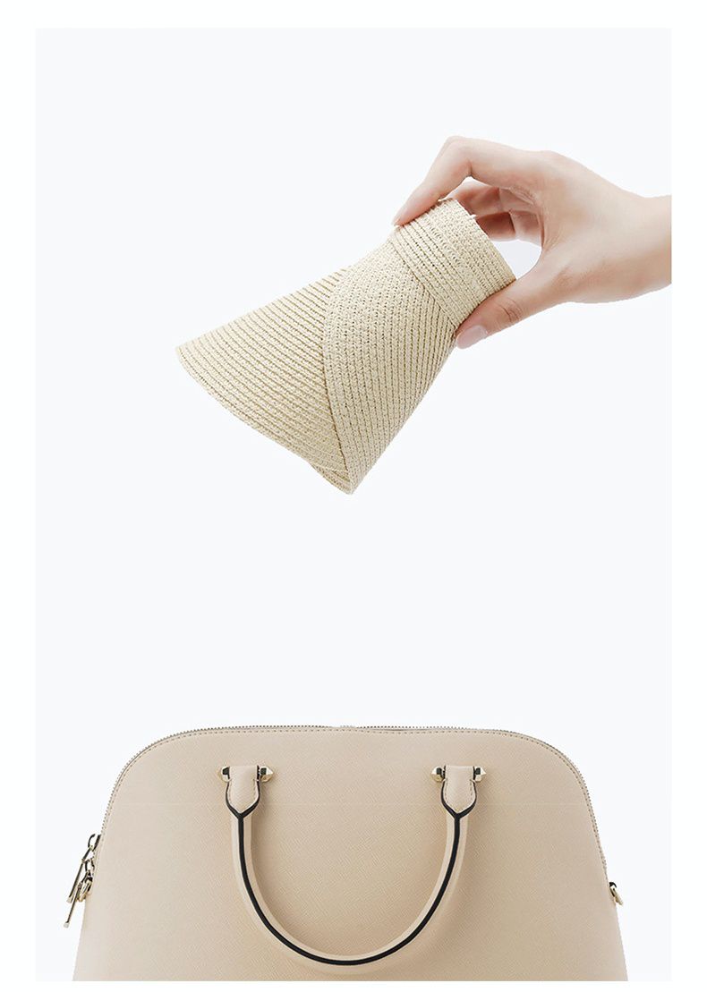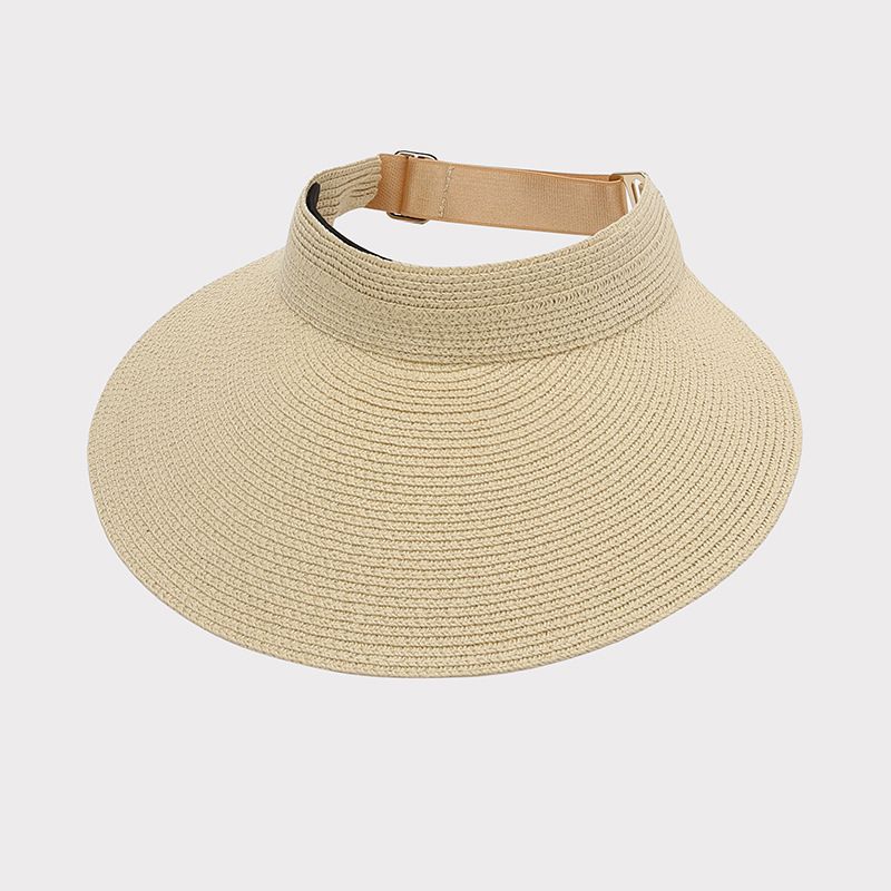 可折疊加大帽沿空頂遮陽帽-米色