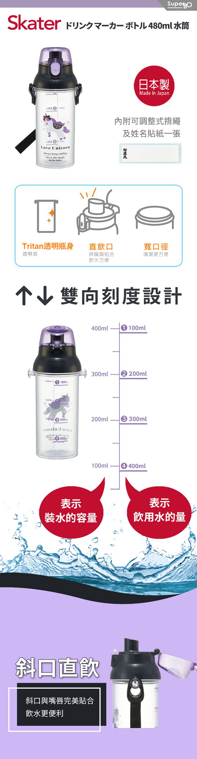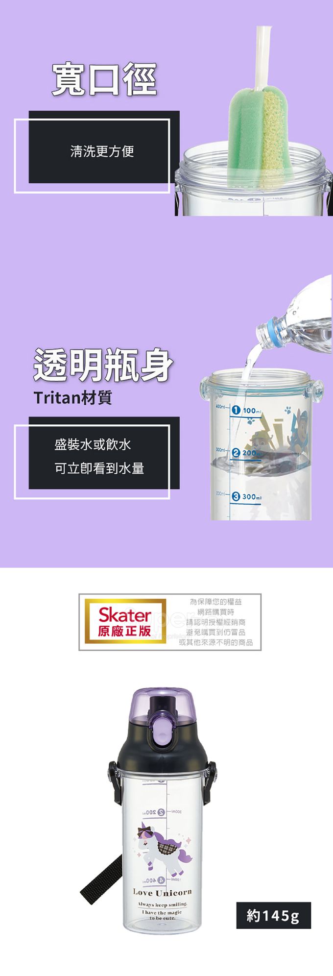 注意事項:● 請以海綿清洗,勿用鋼刷或硬質物洗滌,以免刮傷。 ● 此品為原裝進口,若拆封後無法復原,請確認所需後再請購買 ●此為直飲式水壺,不適合5歲以下幼童使用,請評估有能力使用再購買 。