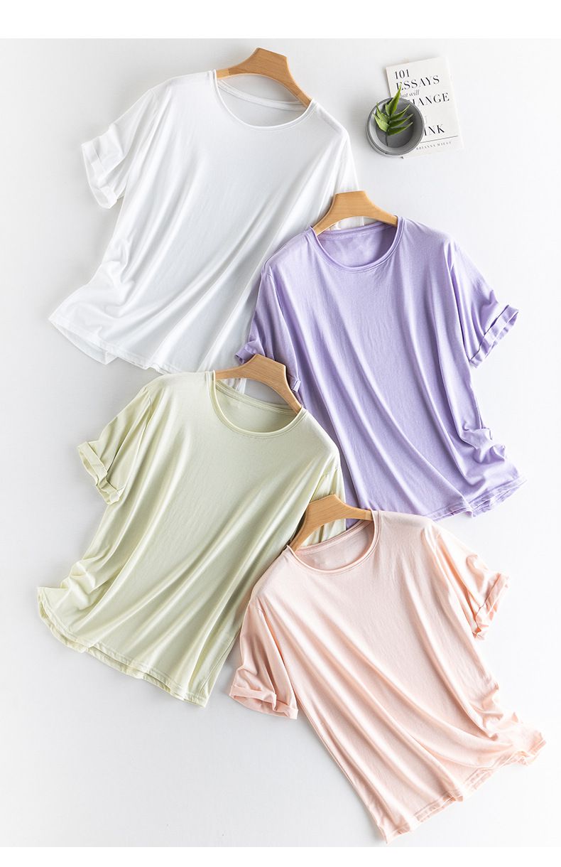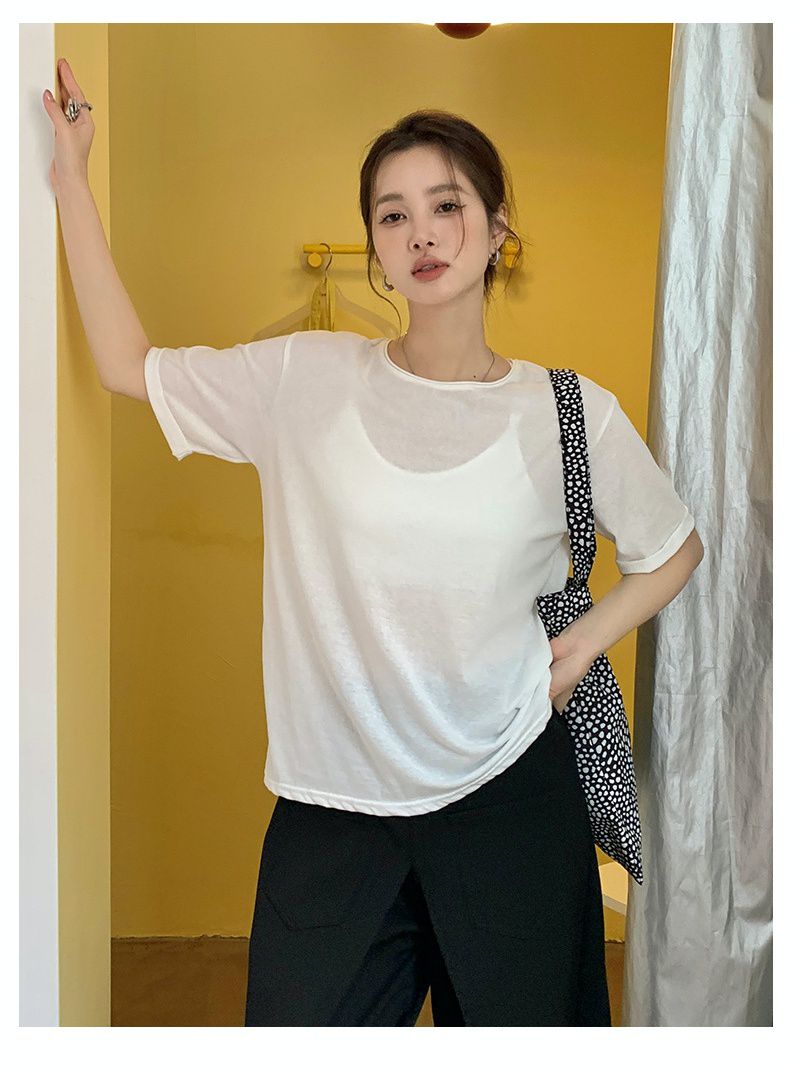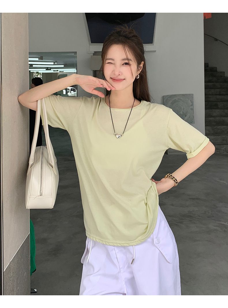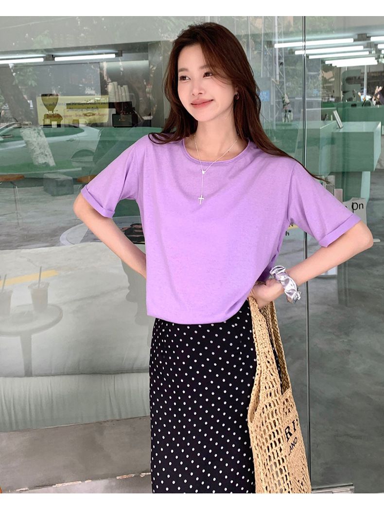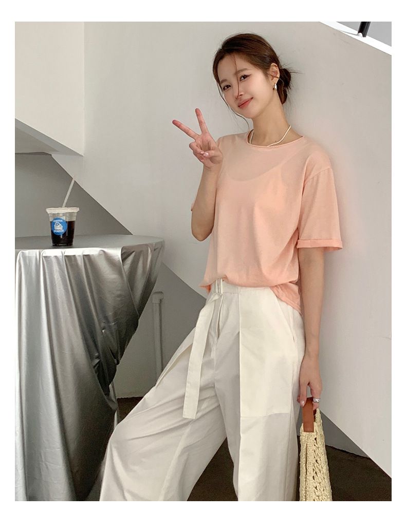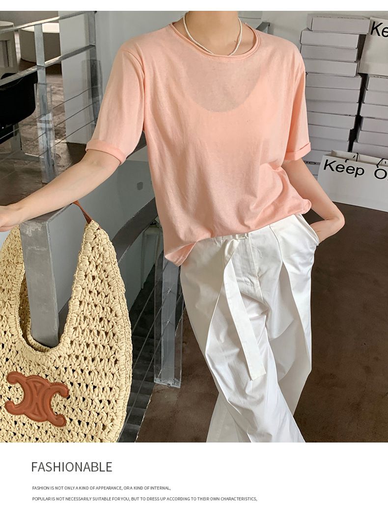 KPUWARM - 竹節棉卷邊圓領短袖上衣-甜粉橘